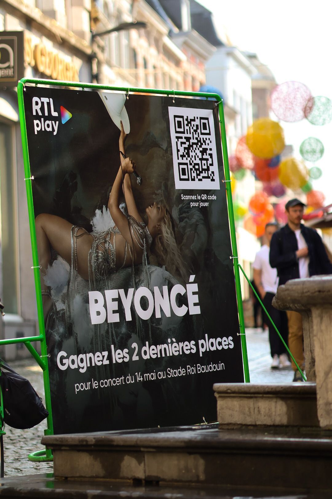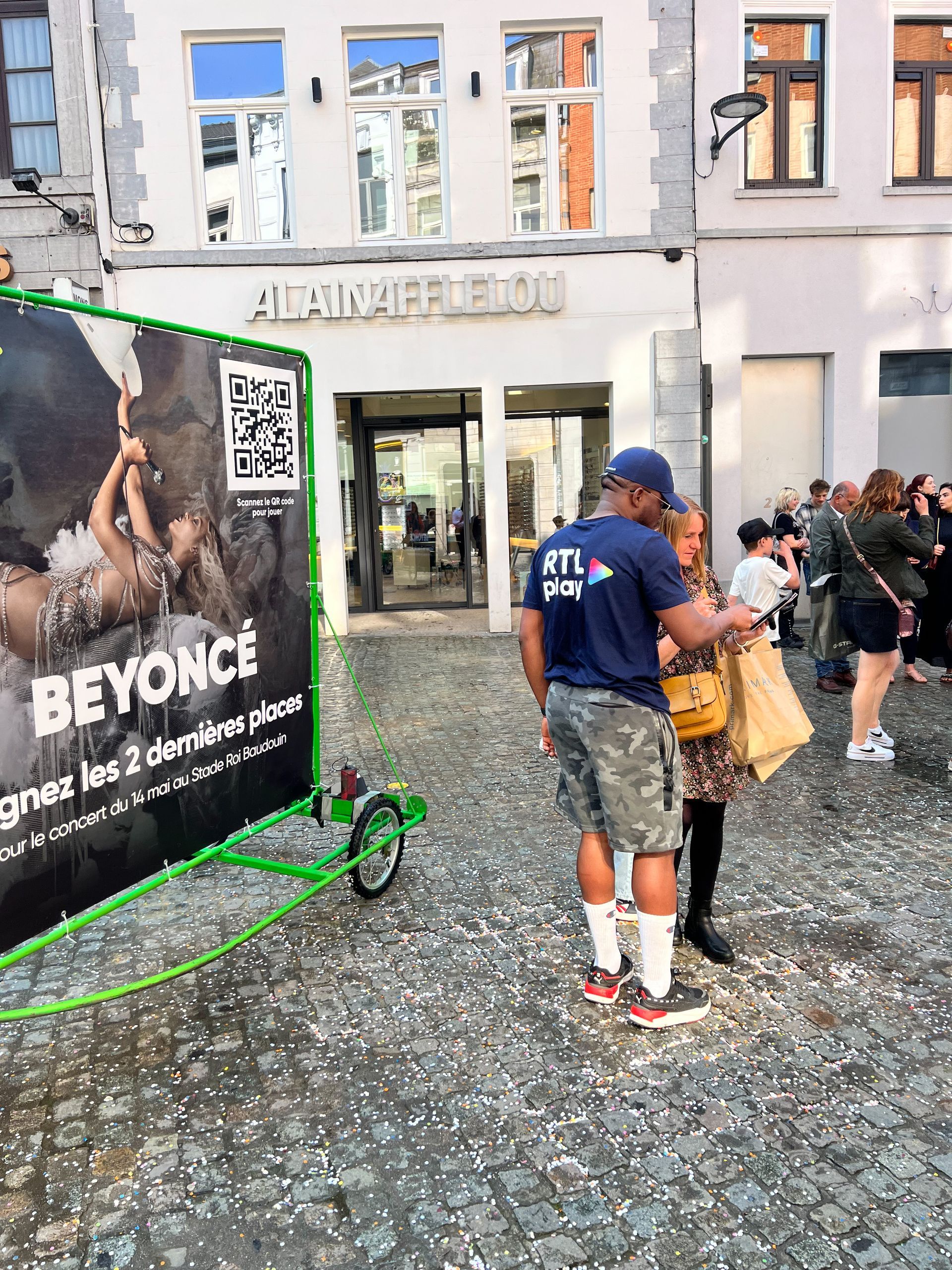 Un concours a été mis en place par RTL play pour faire gagner les 2 dernières places pour le grand concert de Beyonce au stade roi Beaudoin de Bruxelles. La particularité de cette campagne est que nous avons été présents sur 4 villes de la Belgique.